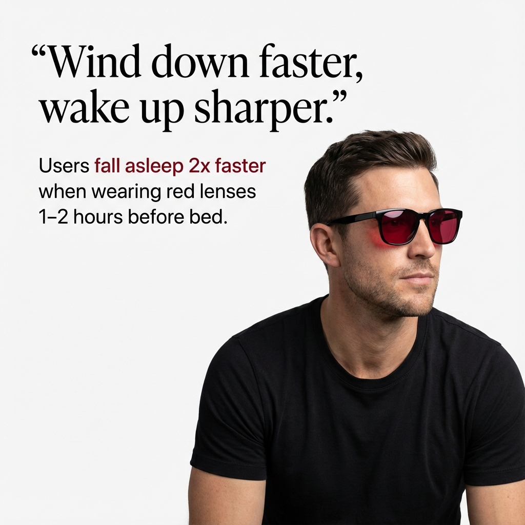 Clear lenses stop short. Red lenses go deeper blocking 99% of the blue light that tricks your brain into ‘daytime mode', so you can finally sleep better and feel better.